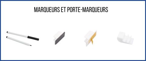 Il existe aussi des porte-marqueurs que vous pouvez fixer sur un mur si vous ne désirez pas de porte-marqueur magnétique ou si votre tableau n'est pas métallique. Il s'agit d'une solution si vous ne pouvez faire tenir vos marqueurs autrement. Attention par contre lors de l'achat, car parfois la colle est de mauvaise qualité. Le porte-marqueur ne tient alors pas longtemps.
