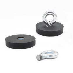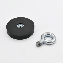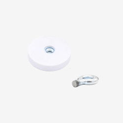 Cet aimant œillet est une association d'une base antiglisse et d'un œillet vissé à l'intérieur. Le couvercle en caoutchouc regroupe et protège plusieurs aimants néodymes. Sa matière permet de poser l'aimant et de le faire bouger sur de nombreuses matières sans provoquer de rayures. Le diamètre intérieur de l'aimant mesure 1 centimètre. La base aimantée mesure quant à elle 31 millimètres de diamètre et 6 mm d'épaisseur. L'aimant néodyme antiglisse possède une force d'adhérence de 8kg. Ce petit aimant puissant avec œillet offre de nombreuses possibilités d'utilisation. Toutes les caractéristiques techniques de cet aimant en pot avec œillet sont présentes dans l'onglet "Fiche technique".